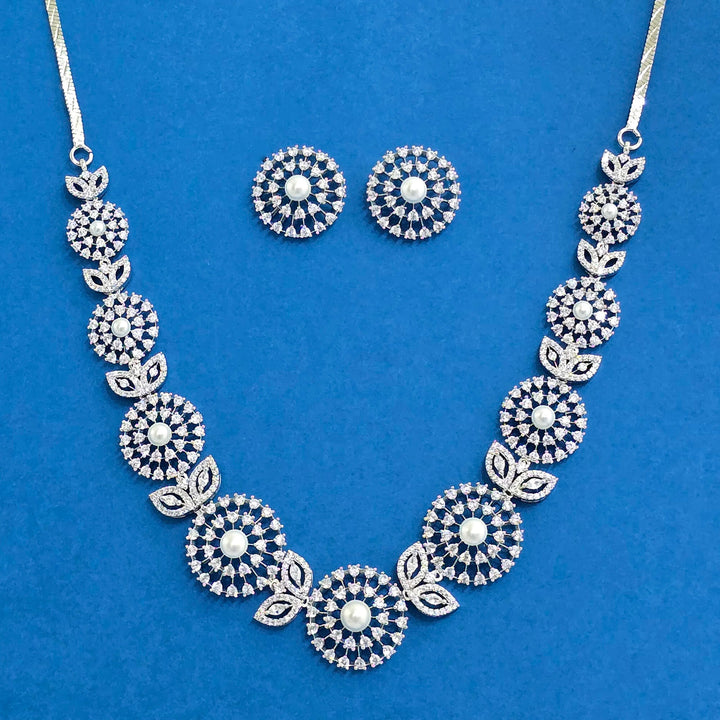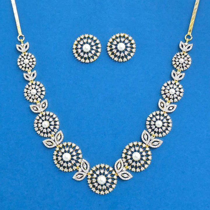 439438 Cubic Zirconia Moti Necklace Set With Rhodium 2 Tone Plating