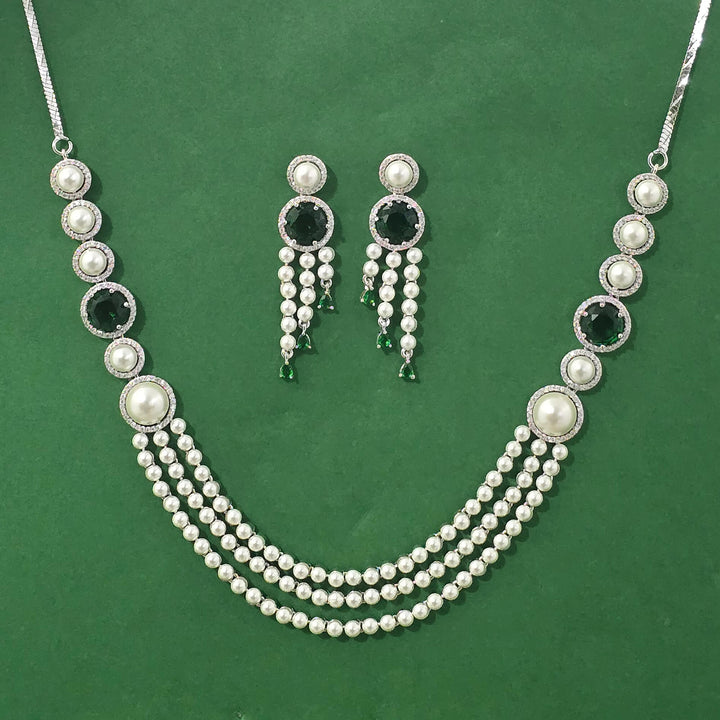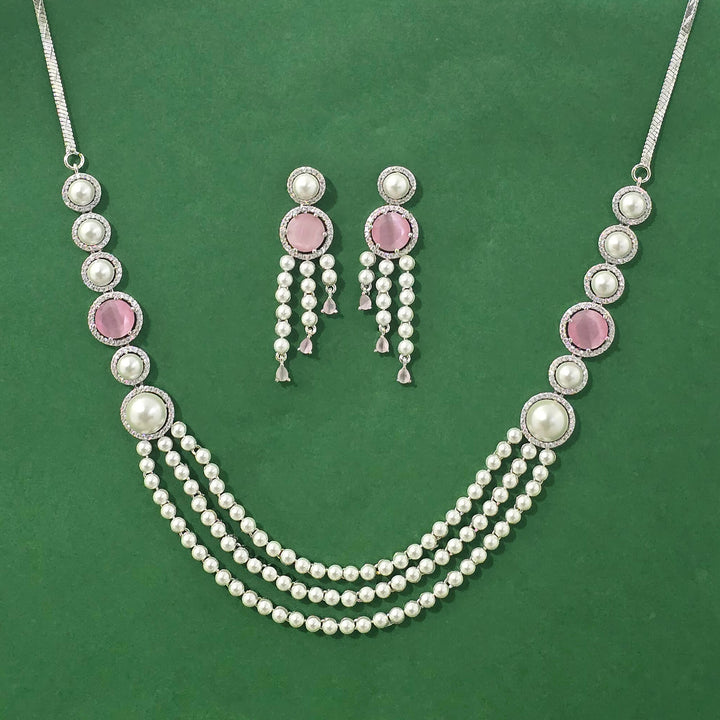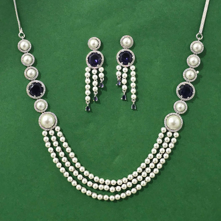 441228 Cubic Zirconia Moti Necklace With Rhodium Plating