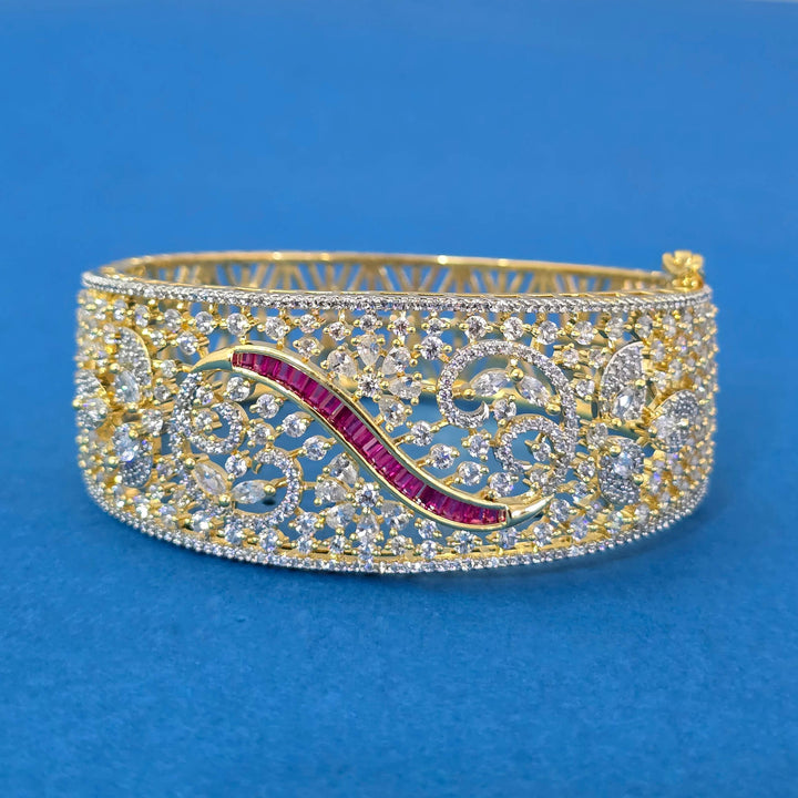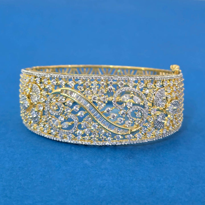 440175 Cubic Zirconia Openable Kada With 2 Tone Plating