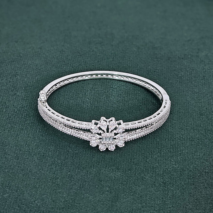 437410 Cubic Zirconia Openable Kada With 2 Tone Rhodium Plating