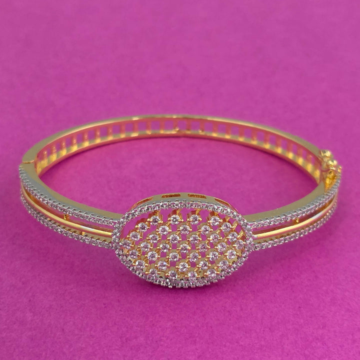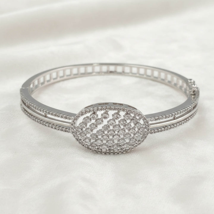 441540 Cubic Zirconia Openable Kada With 2 Tone Rhodium Plating