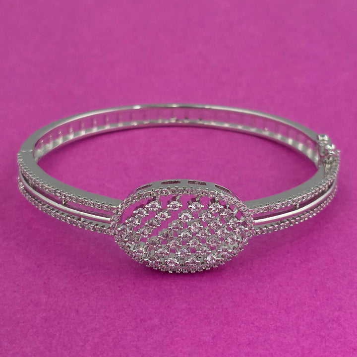 Weight: 14.0 Grams, Height = 47 mm || Width = 54 mm,Classic Kada,2 Tone Plating,Rhodium Plating,American Diamond Kada