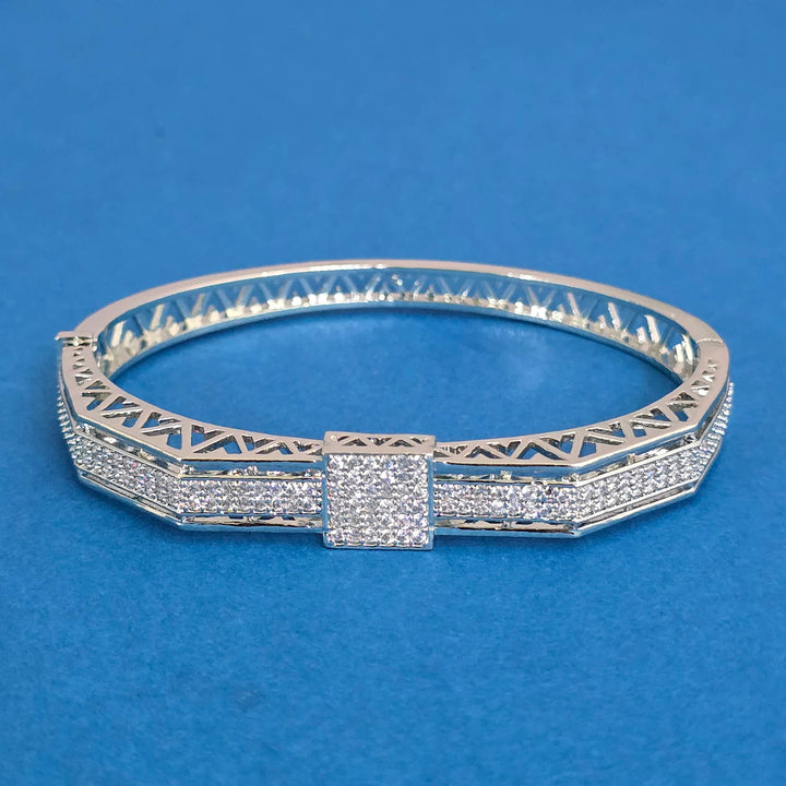 Weight: 16.0 Grams, Height = 56 mm || Width = 46 mm,Classic Kada,American Diamond Kada,2 Tone Plating,Rhodium Plating