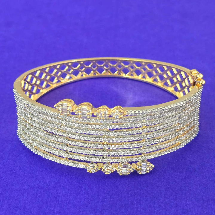 Weight: 21.0 Grams, Height = 50 mm || Width = 57 mm,Latest Design,Carat Plating,2 Tone Plating,Rhodium Plating,American Diamond Kada