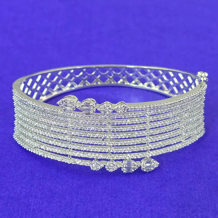 441163 Cubic Zirconia Openable Kada With Carat Rhodium 2 Tone Plating