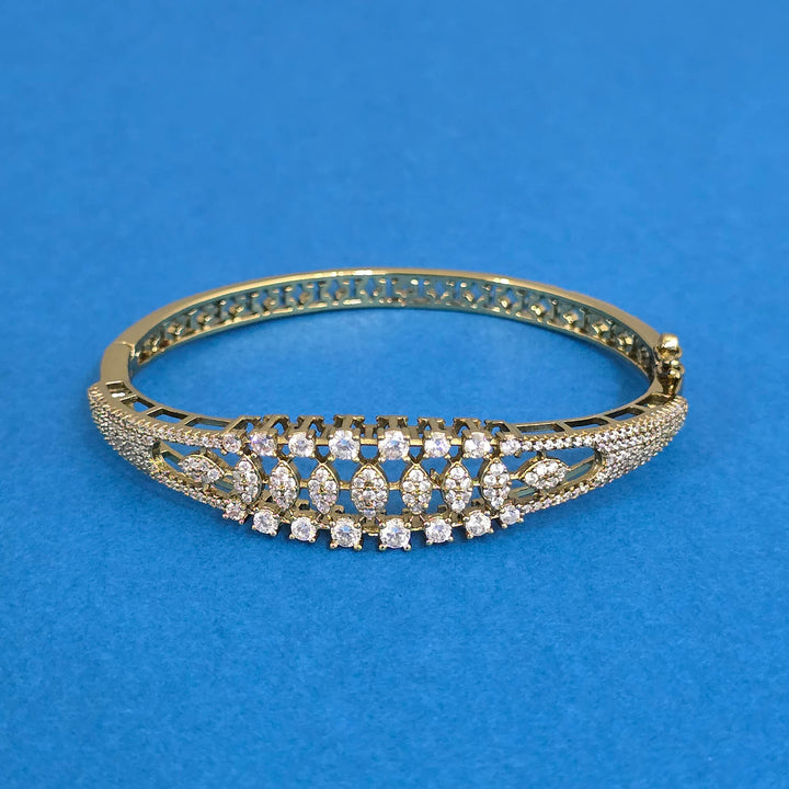 Weight: 14.0 Grams, Height = 58 mm || Width = 46 mm,Delicate Design,Mehndi Plating,2 Tone Plating,Rhodium Plating,American Diamond Kada