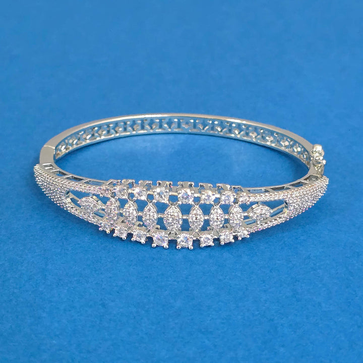 439921 Cubic Zirconia Openable Kada With Mehndi 2 Tone Rhodium Plating