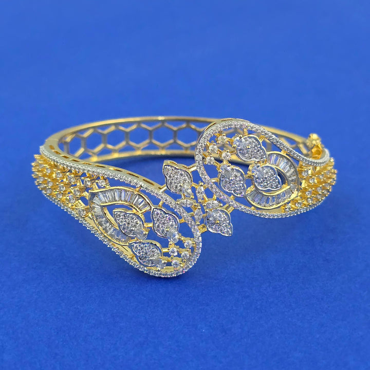 Weight: 22.0 Grams, Height = 45 mm || Width = 54 mm,Classic Kada,Mehndi Plating,2 Tone Plating,Rhodium Plating,American Diamond Kada,American Diamond Kada