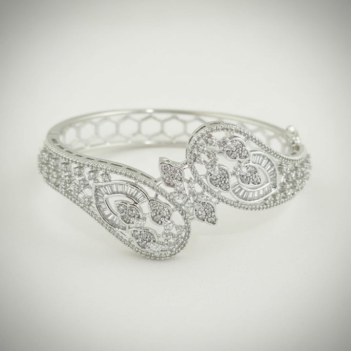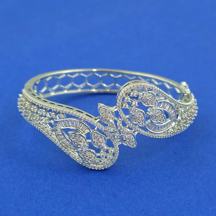 442154 Cubic Zirconia Openable Kada With Mehndi 2 Tone Rhodium Plating