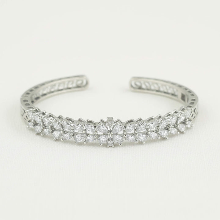 442159 Cubic Zirconia Openable Kada With Mehndi 2 Tone Rhodium Plating