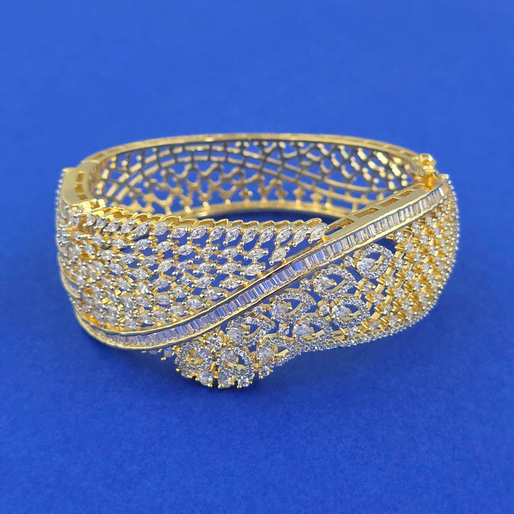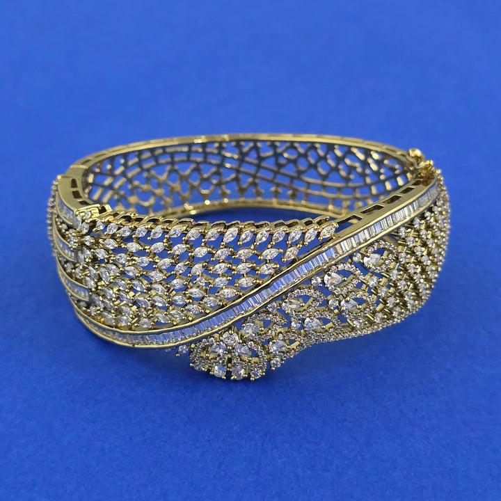 Weight: 34.0 Grams, Height = 46 mm || Width = 58 mm,Classic Kada,Mehndi Plating,2 Tone Plating,Rhodium Plating,American Diamond Kada,American Diamond Kada
