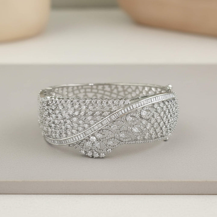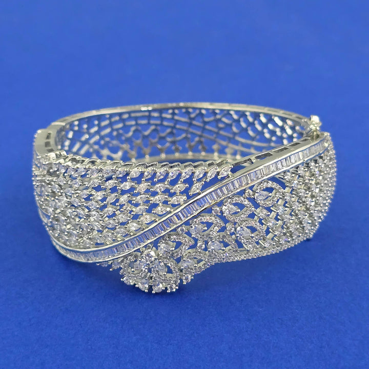 442162 Cubic Zirconia Openable Kada With Mehndi 2 Tone Rhodium Plating