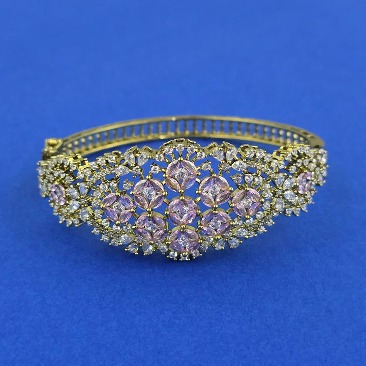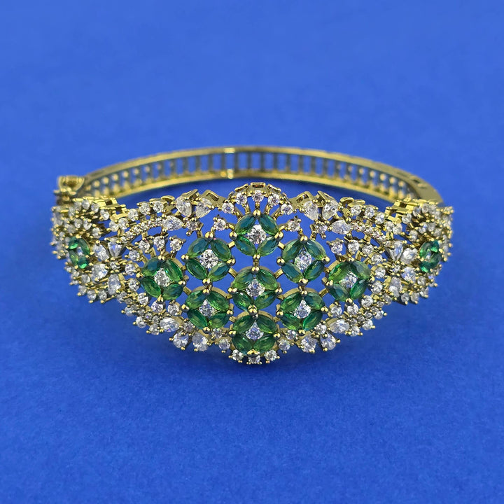 442106 Cubic Zirconia Openable Kada With Mehndi Plating
