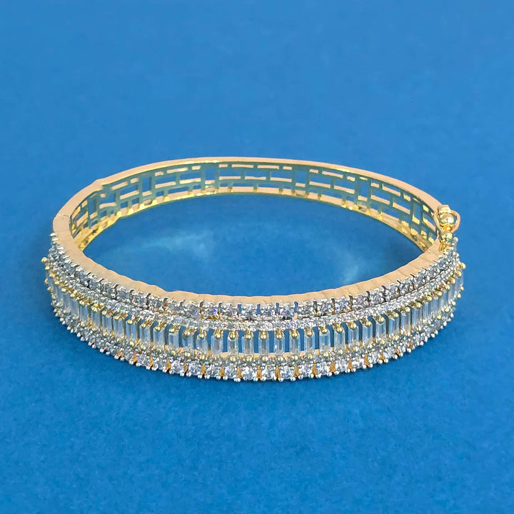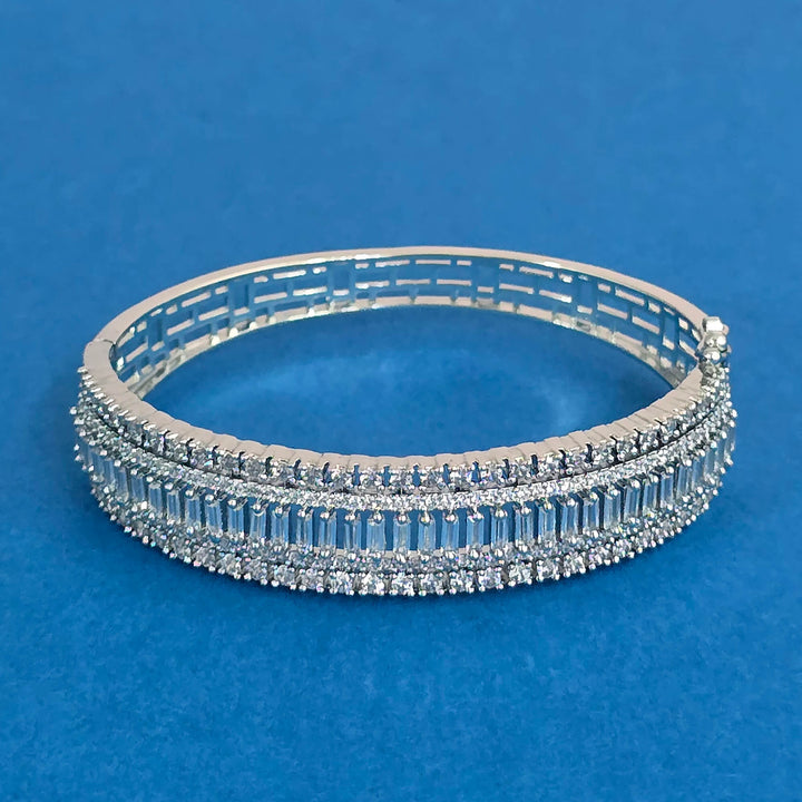 Weight: 18.0 Grams, Height = 44 mm || Width = 50 mm,Classic Kada,2 Tone Plating,Rhodium Plating,American Diamond Kada