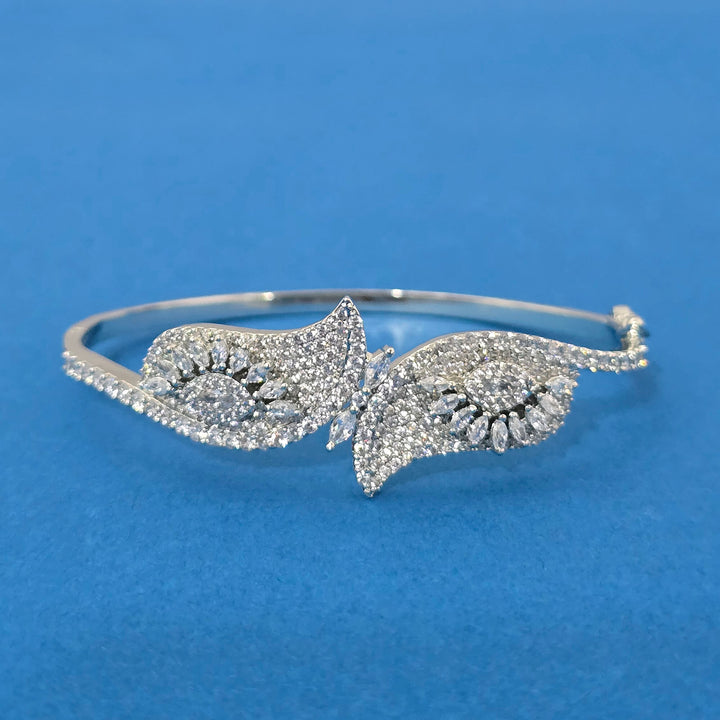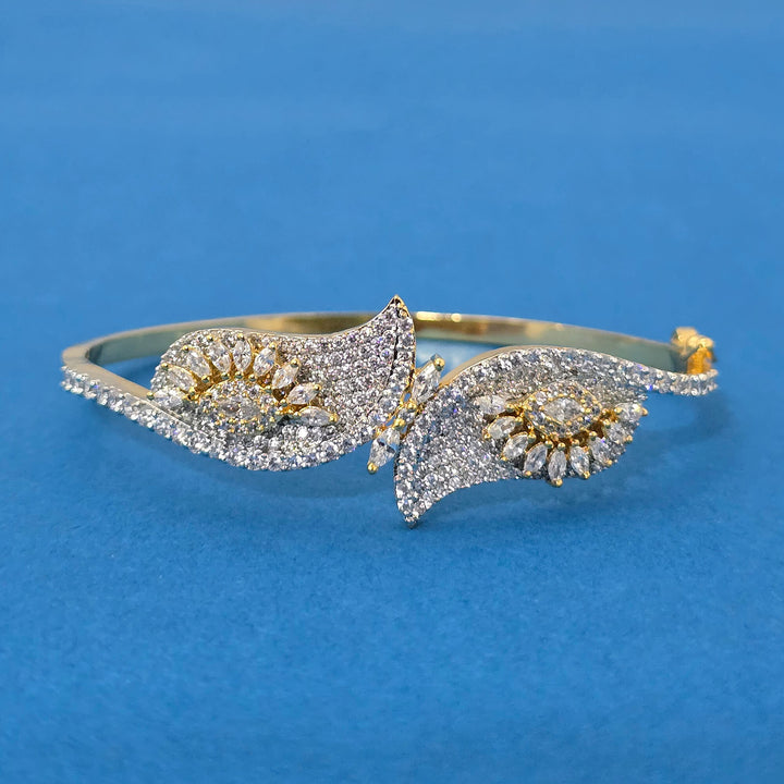 Weight: 12.0 Grams, Height = 47 mm || Width = 56 mm,Latest Design,2 Tone Plating,Rhodium Plating,American Diamond Kada