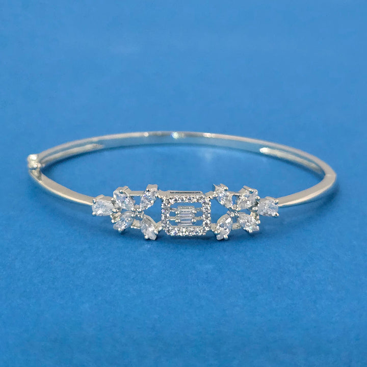 Weight: 9.0 Grams, Height = 52 mm || Width = 60 mm,Delicate Kada,2 Tone Plating,Rhodium Plating,American Diamond Kada