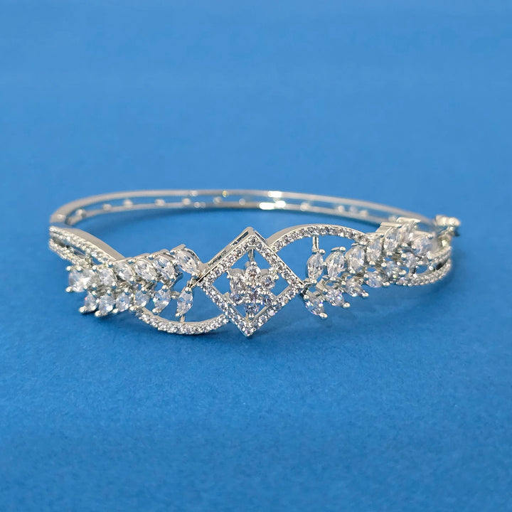 Weight: 12.0 Grams, Height = 49 mm || Width = 56 mm,Classic Kada,2 Tone Plating,Rhodium Plating,American Diamond Kada