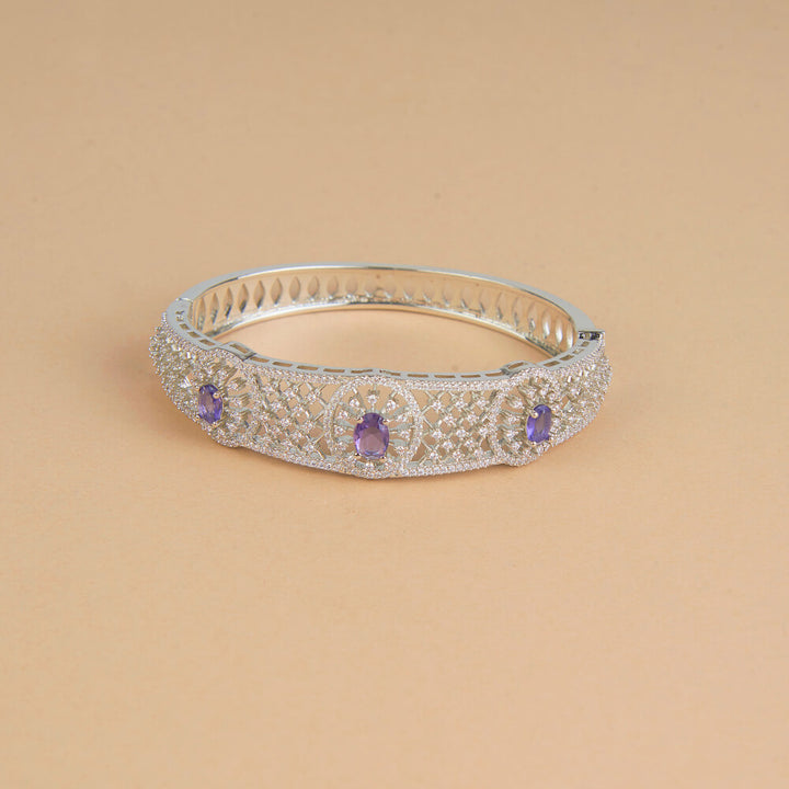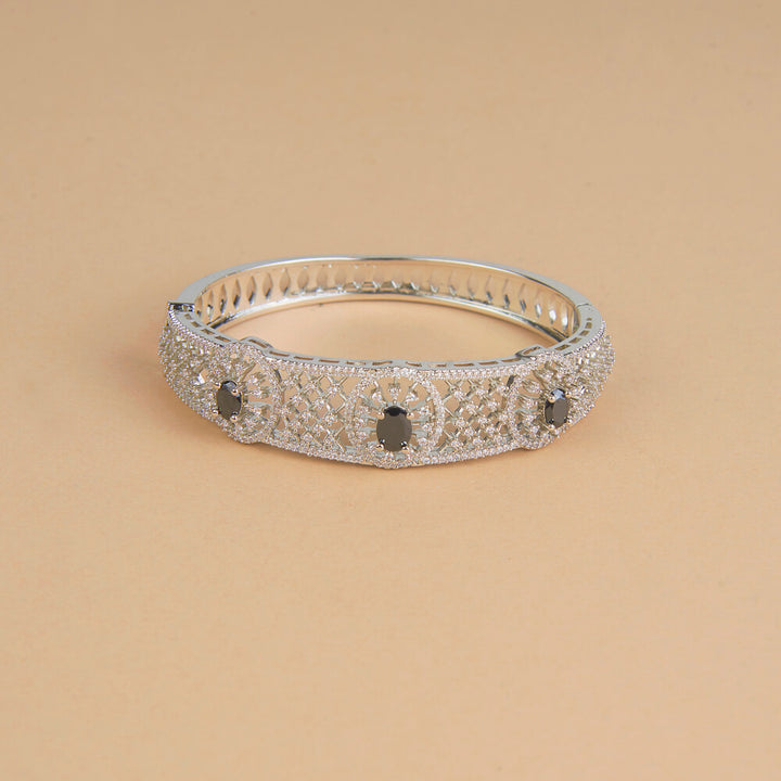 434399 Cubic Zirconia Openable Kada With Rhodium Plating