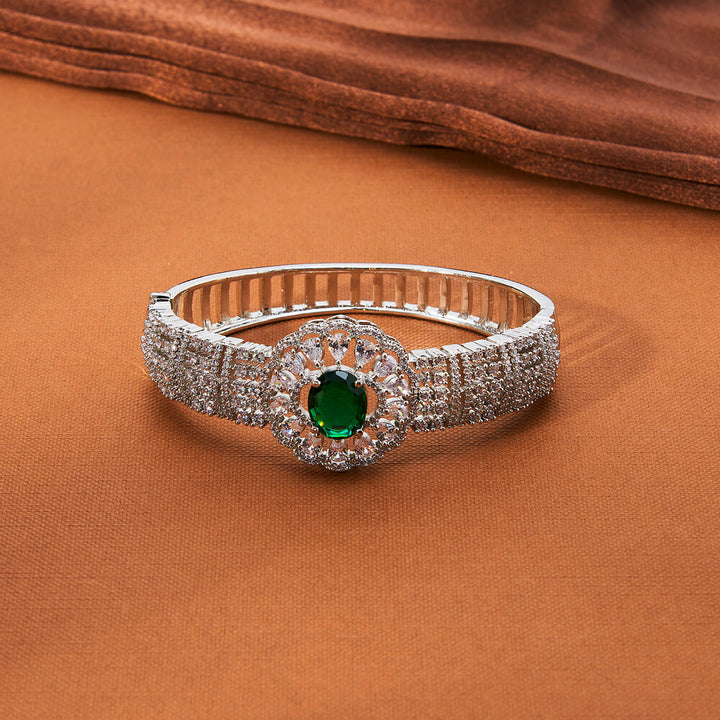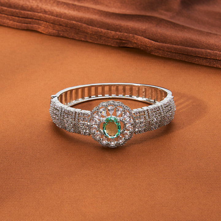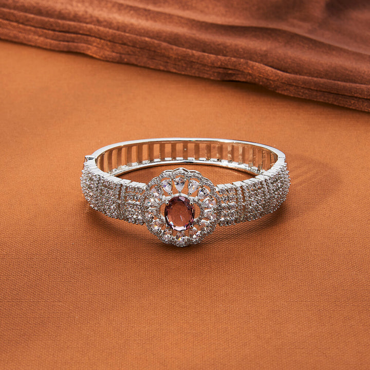 434953 Cubic Zirconia Openable Kada With Rhodium Plating