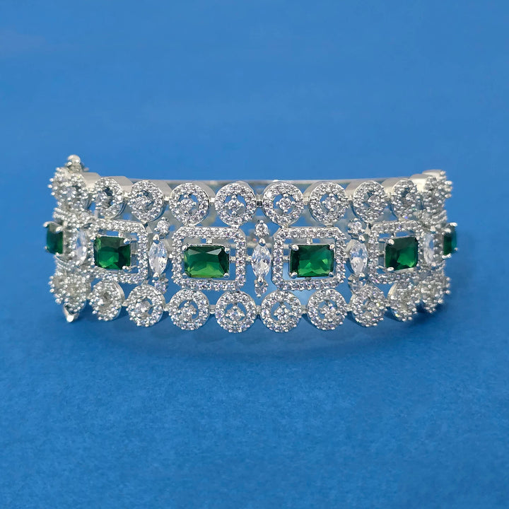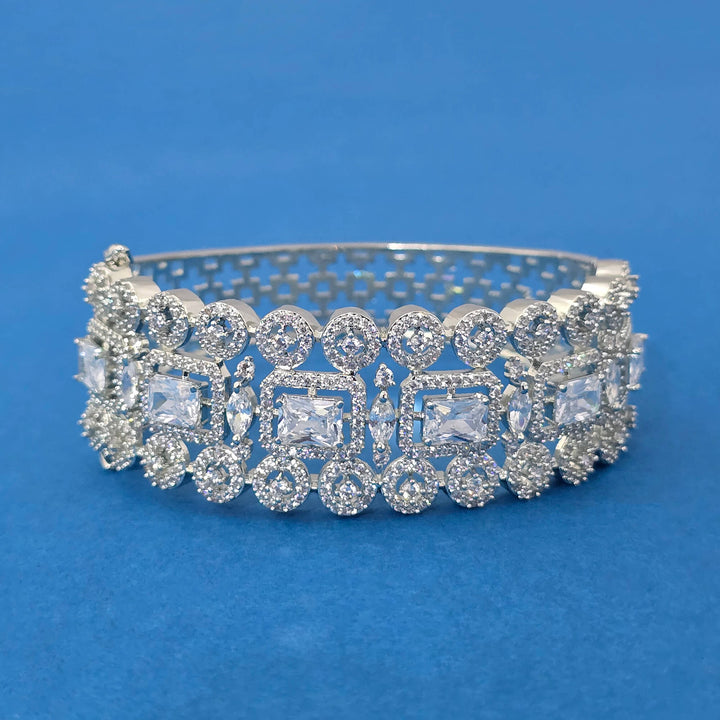 435481 Cubic Zirconia Openable Kada With Rhodium Plating