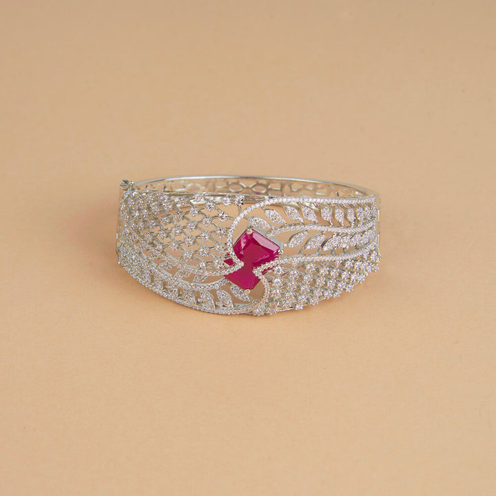 435698 Cubic Zirconia Openable Kada With Rhodium Plating
