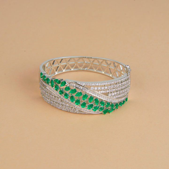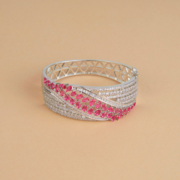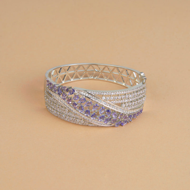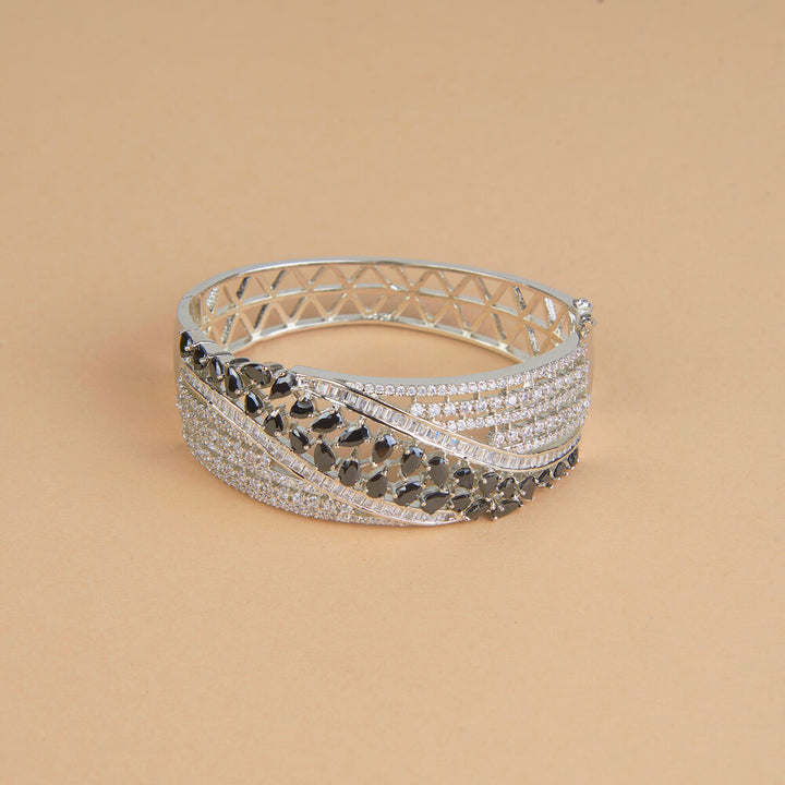 435860 Cubic Zirconia Openable Kada With Rhodium Plating