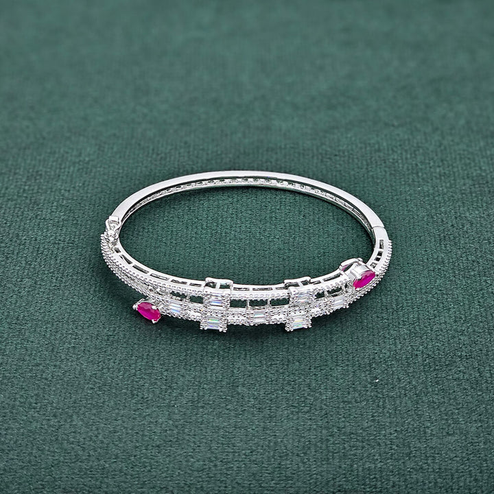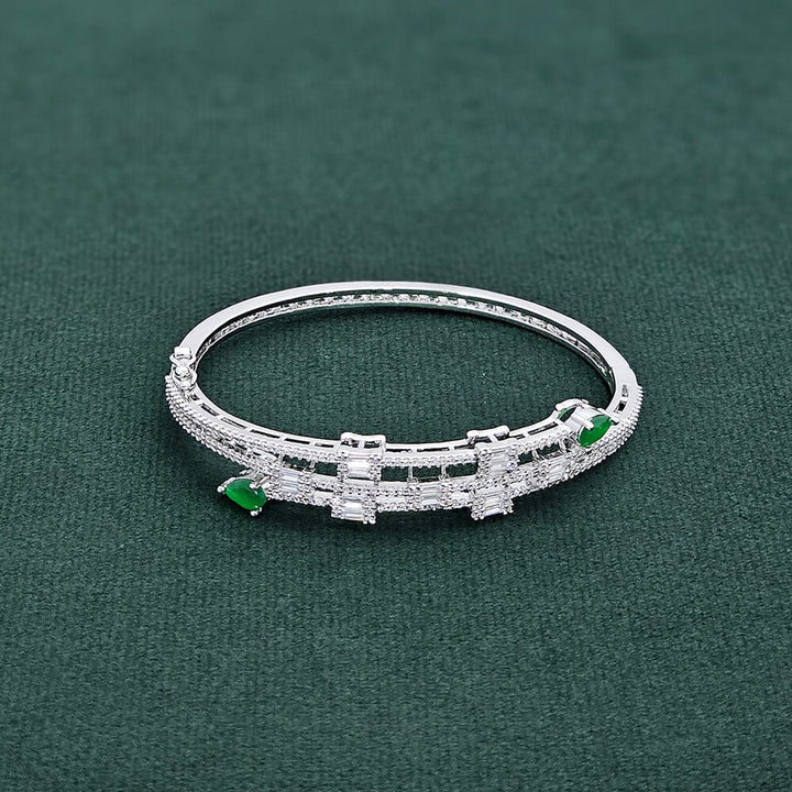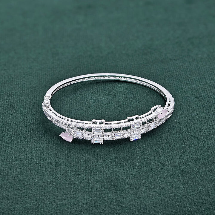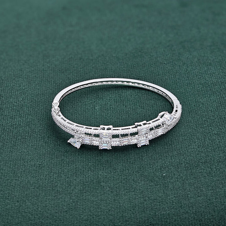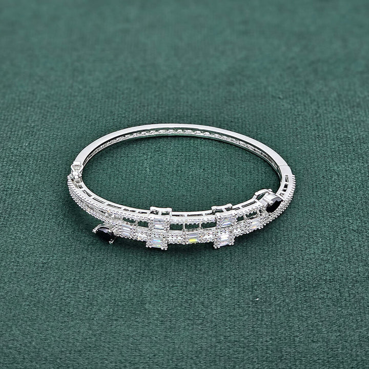 437402 Cubic Zirconia Openable Kada With Rhodium Plating