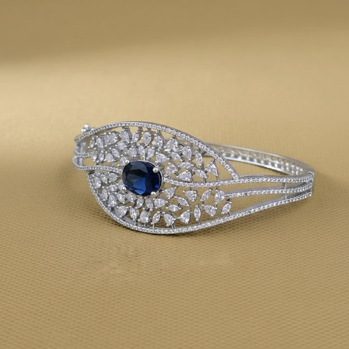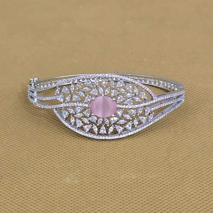 438668 Cubic Zirconia Openable Kada With Rhodium Plating