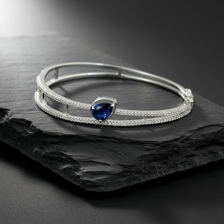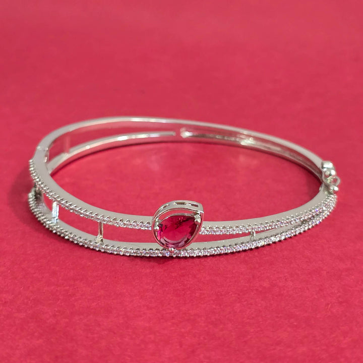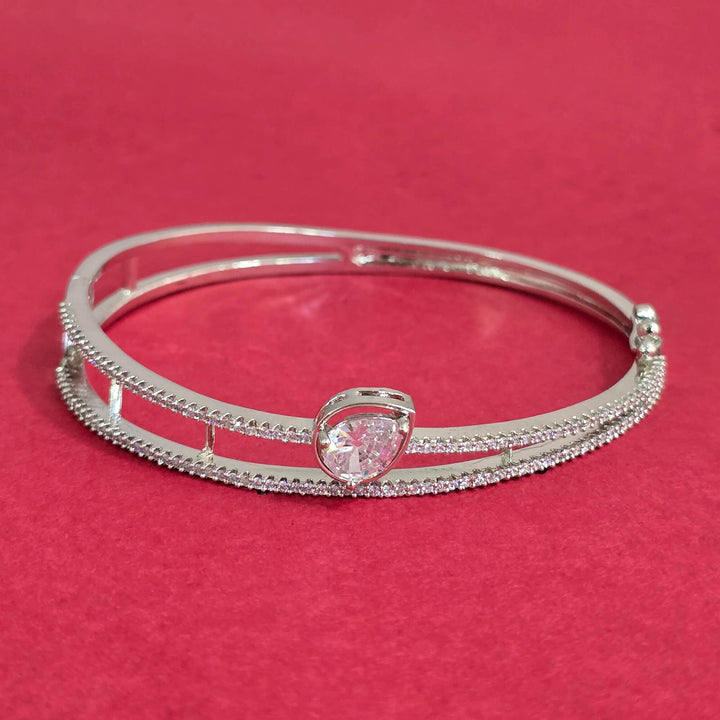 441317 Cubic Zirconia Openable Kada With Rhodium Plating