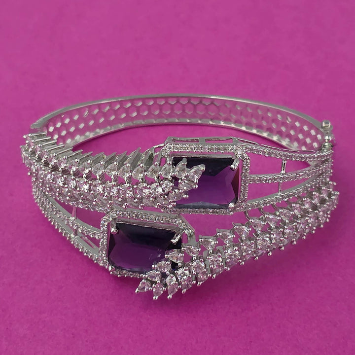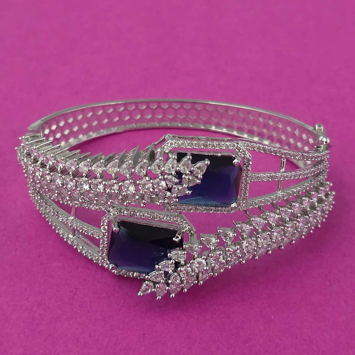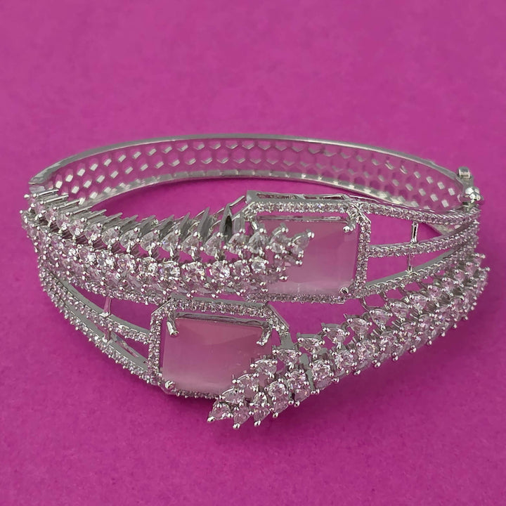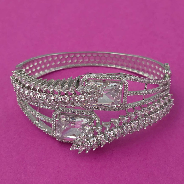 441546 Cubic Zirconia Openable Kada With Rhodium Plating