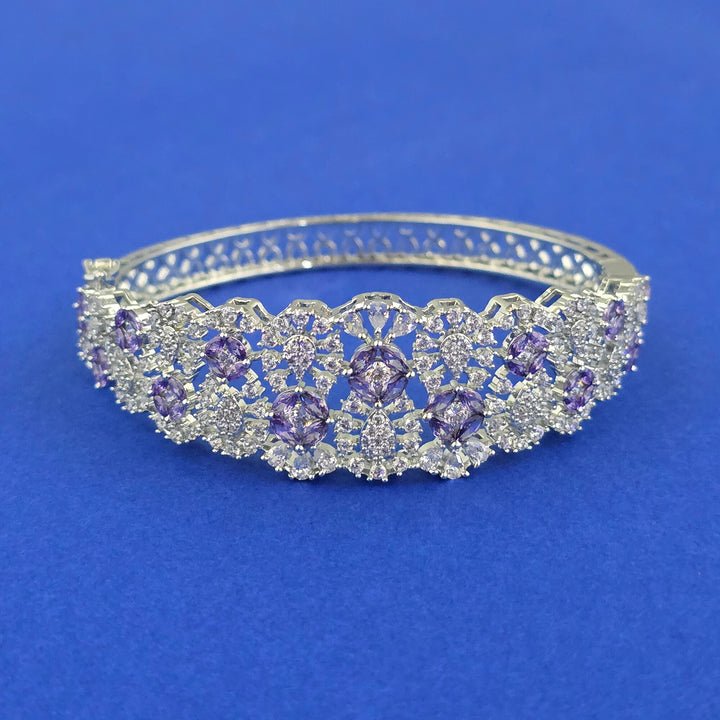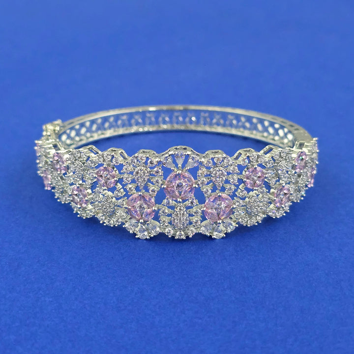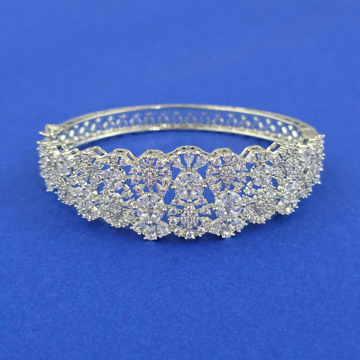 442108 Cubic Zirconia Openable Kada With Rhodium Plating