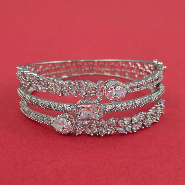 442357 Cubic Zirconia Openable Kada With Rhodium Plating