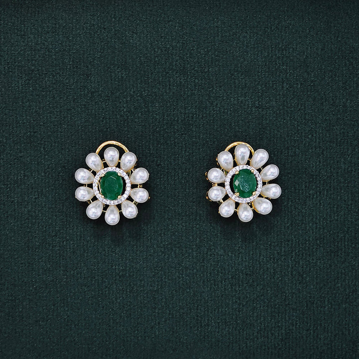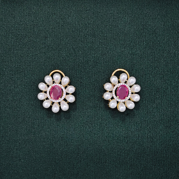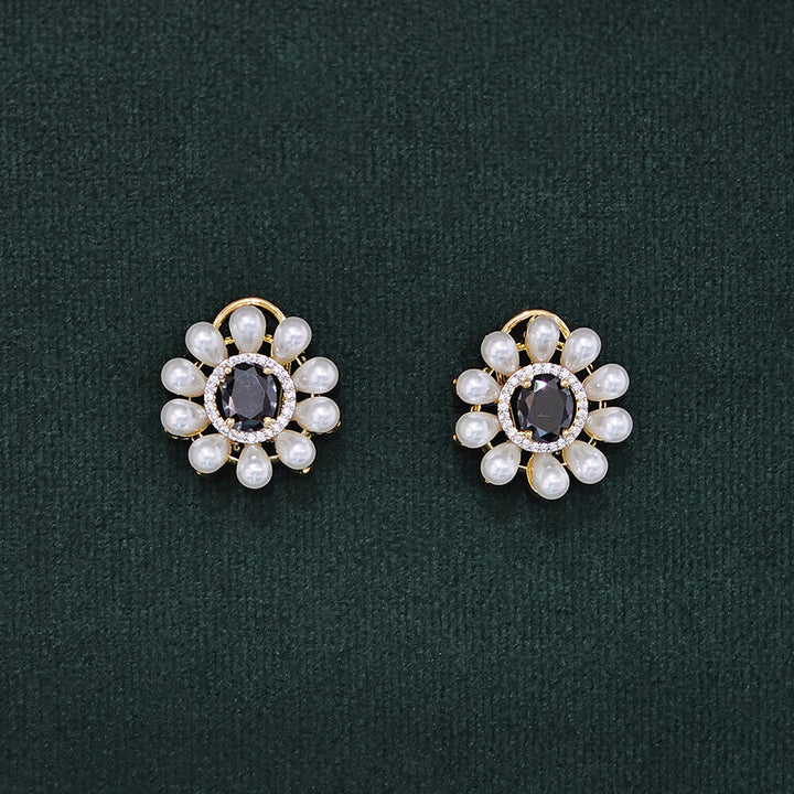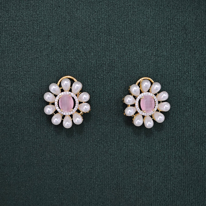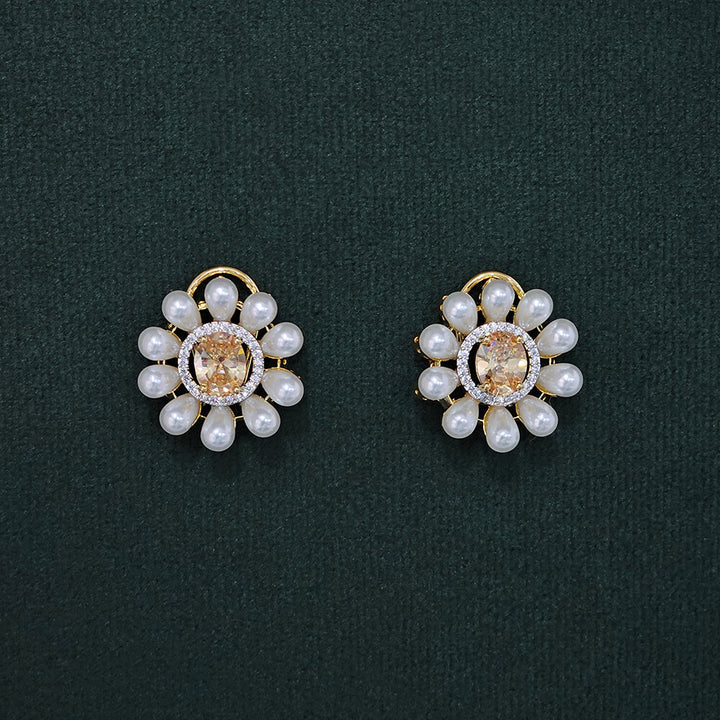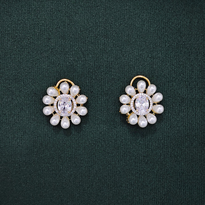 437973 Cubic Zirconia Pearl Tops With 2 Tone Plating