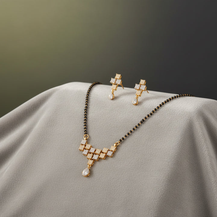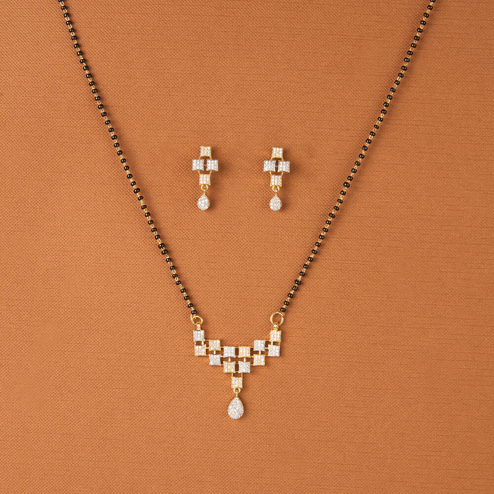 437700 Cubic Zirconia Tanmaniya Mangalsutra With 2 Tone Rhodium Plating