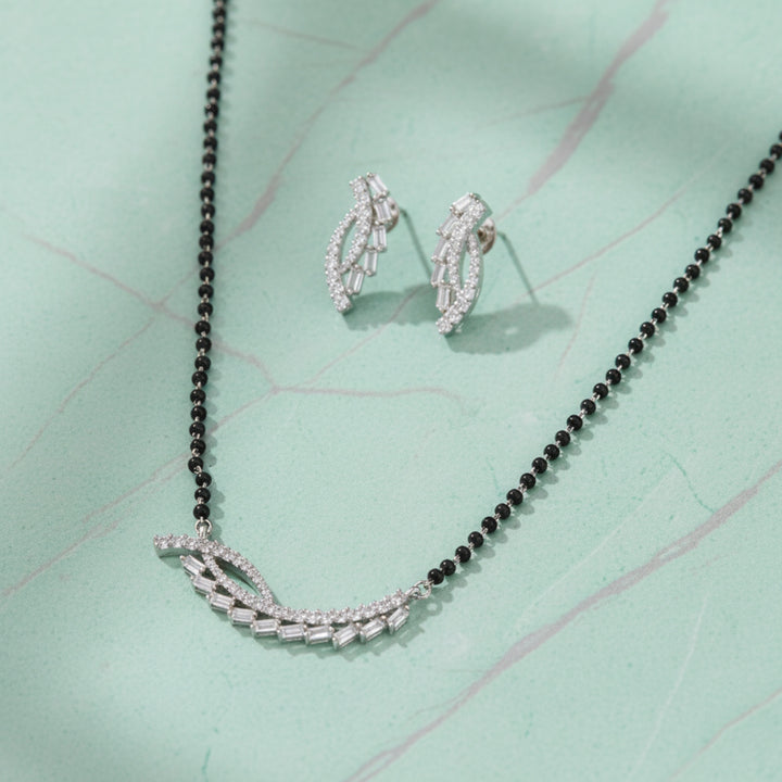 423055 Cubic Zirconia Tanmaniya Mangalsutra With Rhodium Plating