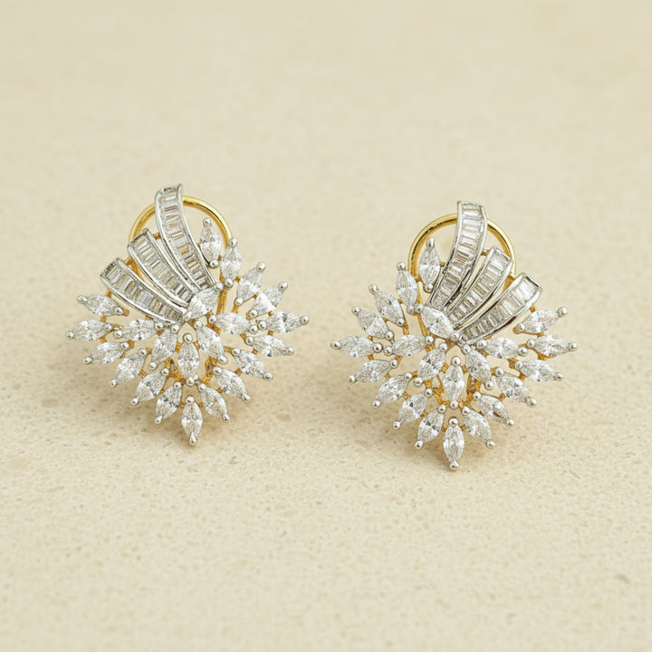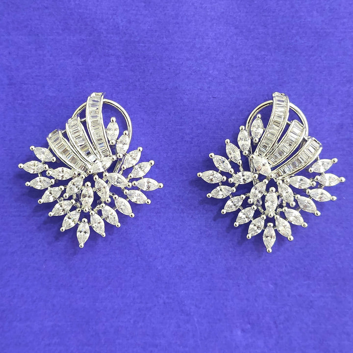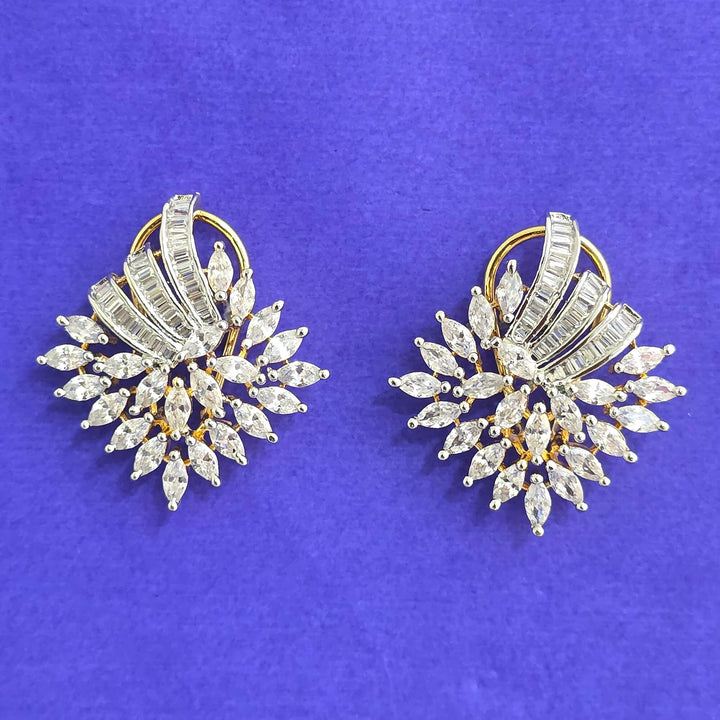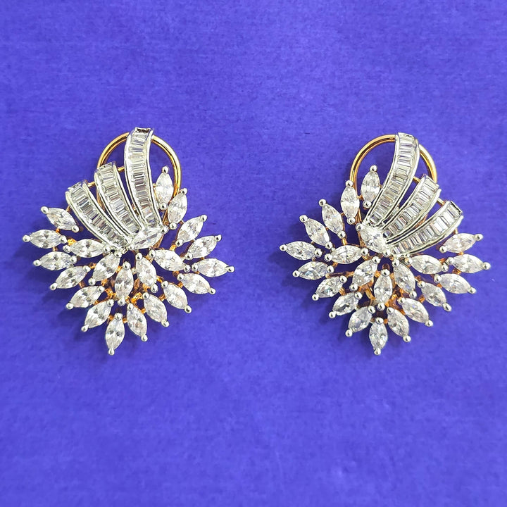 Weight: 12.0 Grams, Height = 33 mm || Width = 30 mm,Latest Design,Carat Plating,2 Tone Plating,Rhodium Plating,American Diamond Earring