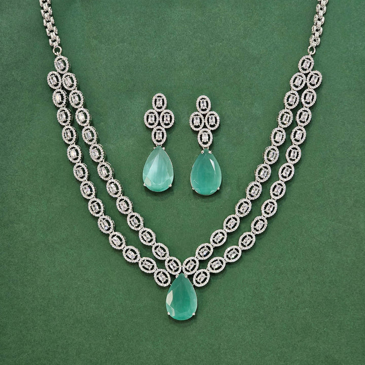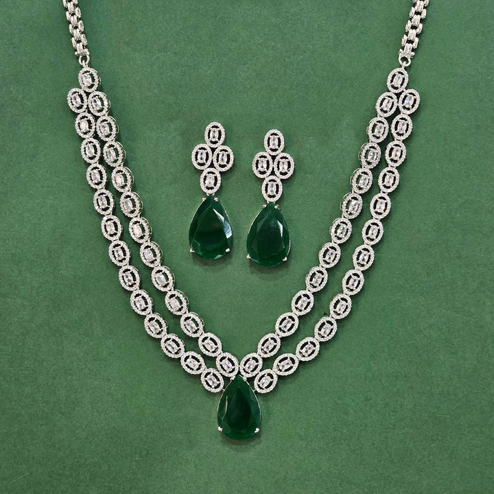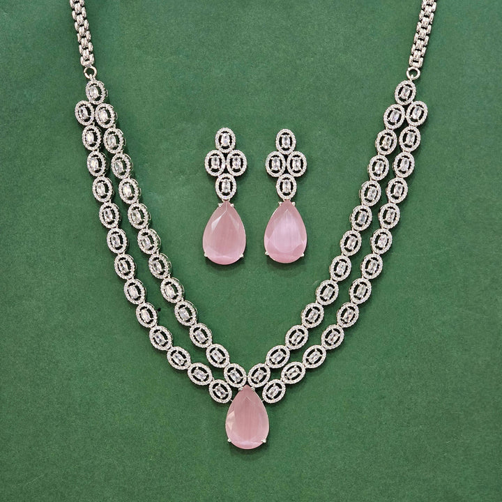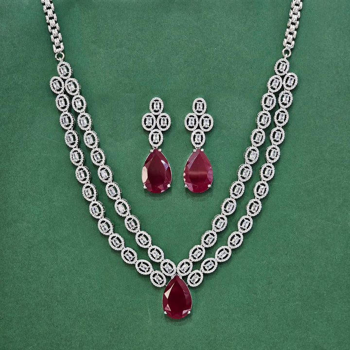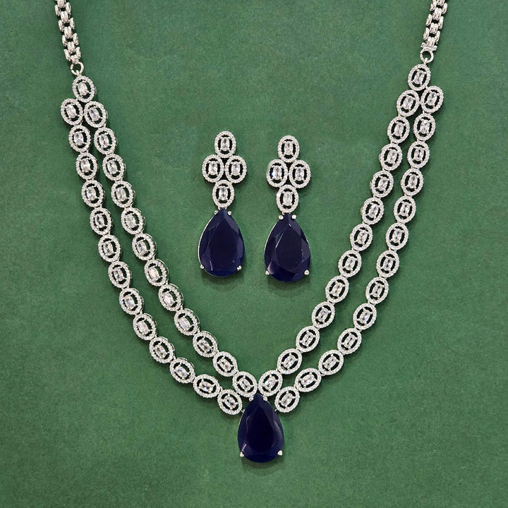 Weight: 83.0 Grams, Earring Height = 52 mm || Width = 16 mm,Regular Size And Adjustable,Classic Necklace,Rhodium Plating,American Diamond Necklace Set