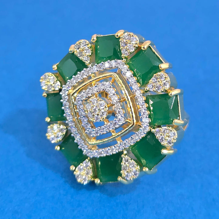 Weight: 8.0 Grams, Height = 26 mm || Width = 26 mm,Classic Ring,2 Tone Plating,American Diamond Ring