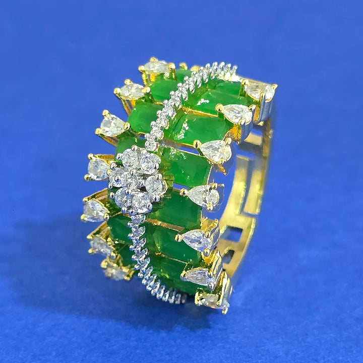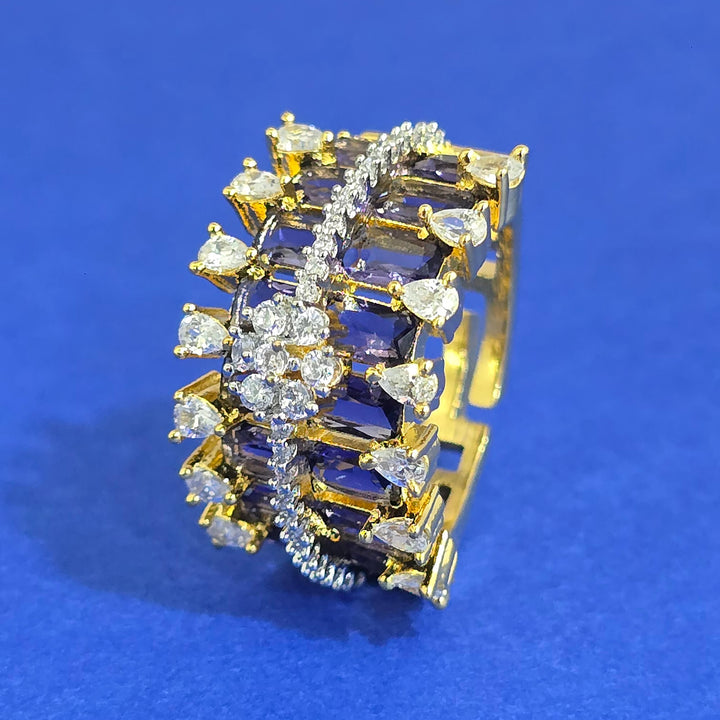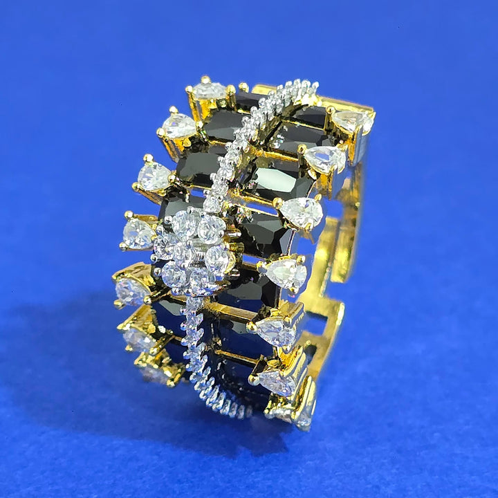 Weight: 7.0 Grams, Height = 15 Mm || Width = 22 Mm,Classic Design,2 Tone Plating,American Diamond Ring
