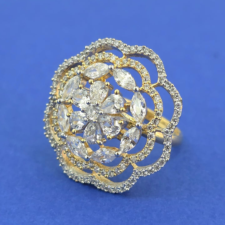 Weight: 5.0 Grams, Height = 25 mm || Width = 25 mm,Classic Ring,2 Tone Plating,American Diamond Ring