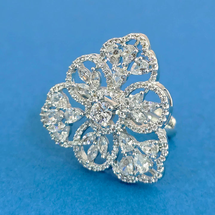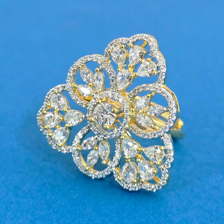 Weight: 9.0 Grams, Height = 30 mm || Width = 30 mm,Classic Ring,2 Tone Plating,Rhodium Plating,American Diamond Ring