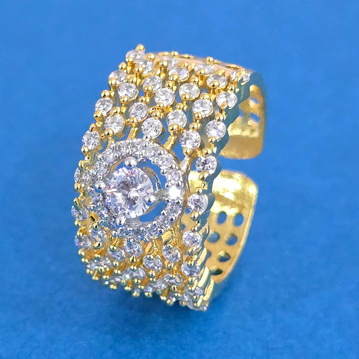Weight: 4.0 Grams, Height = 11 mm || Width = 20 mm,Classic Ring,2 Tone Plating,Rhodium Plating,American Diamond Ring