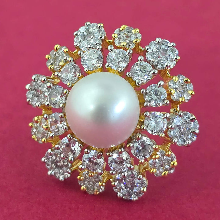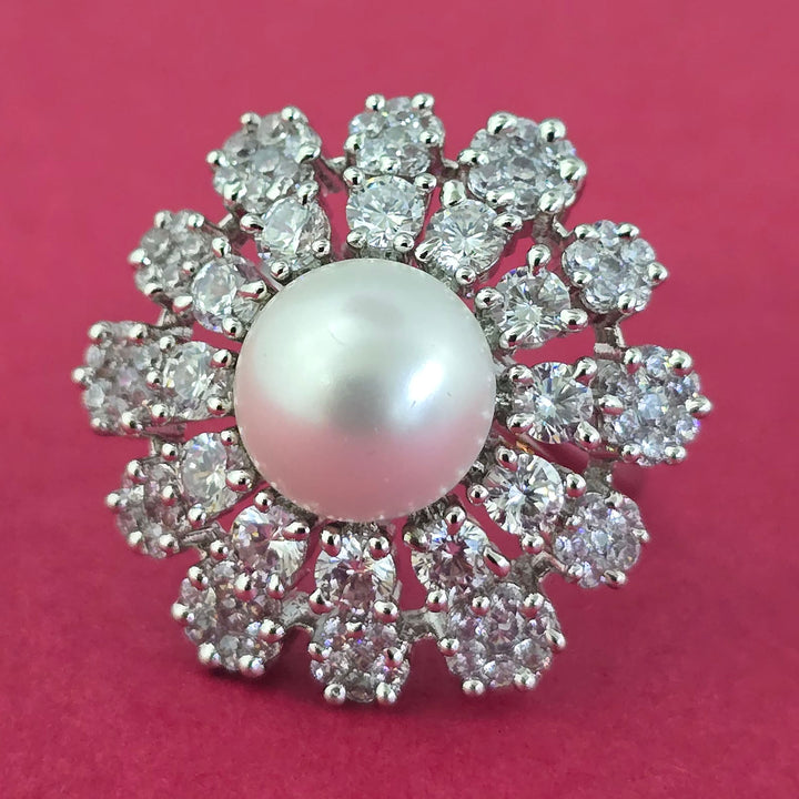 Weight: 7.0 Grams, Height = 25 mm || Width = 25 mm,Classic Ring,2 Tone Plating,Rhodium Plating,American Diamond Ring