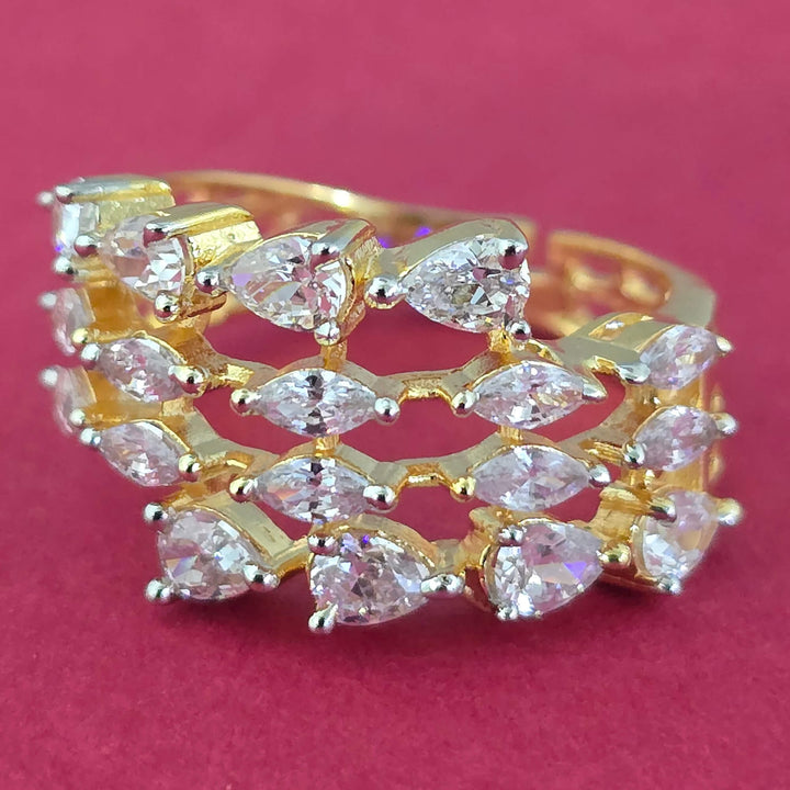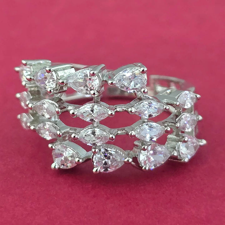 Weight: 4.0 Grams, Height = 13 mm || Width = 24 mm,Classic Ring,2 Tone Plating,Rhodium Plating,American Diamond Ring