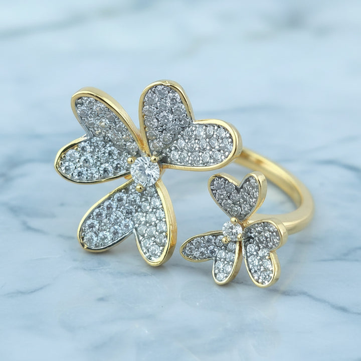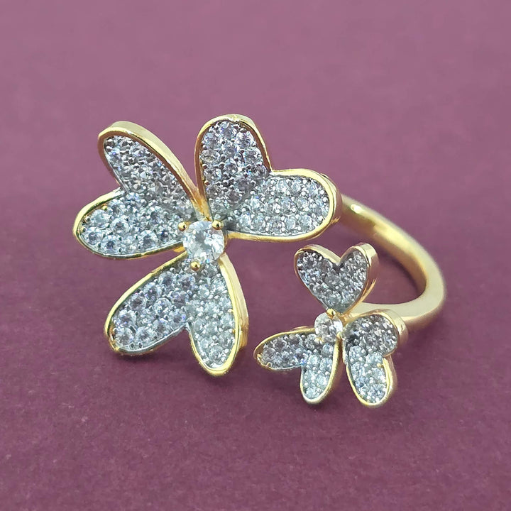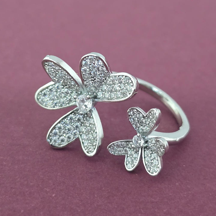Weight: 4.0 Grams, Height = 19 mm || Width = 26 mm,Delicate Design,2 Tone Plating,Rhodium Plating,American Diamond Ring