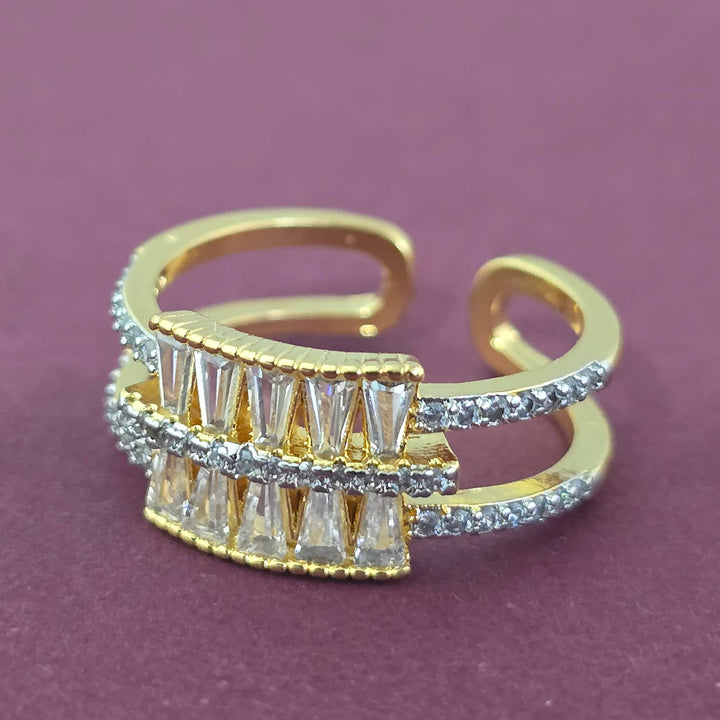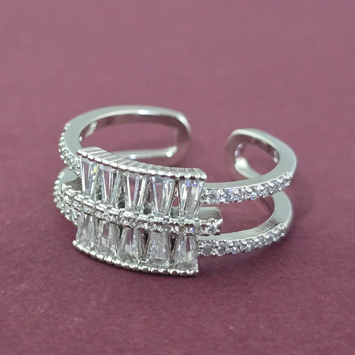 Weight: 3.0 Grams, Height = 10 mm || Width = 20 mm,Delicate Design,2 Tone Plating,Rhodium Plating,American Diamond Ring