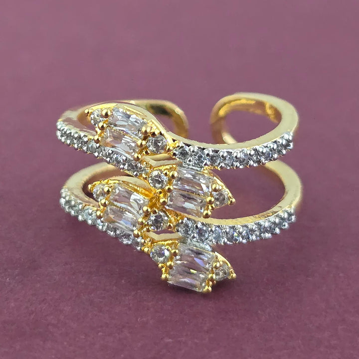 Weight: 4.0 Grams, Height = 12 mm || Width = 18 mm,Delicate Design,2 Tone Plating,Rhodium Plating,American Diamond Ring