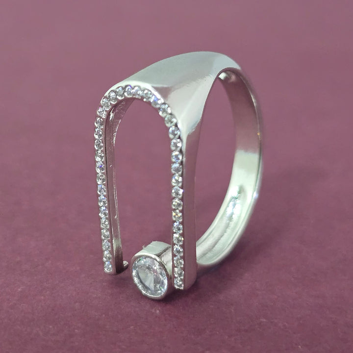 Weight: 3.0 Grams, Height = 10 mm || Width = 20 mm,Delicate Design,2 Tone Plating,Rhodium Plating,American Diamond Ring