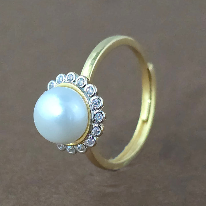 Weight: 2.0 Grams, Height = 12 Mm || Width = 12 Mm,Moti Ring,2 Tone Plating,Rhodium Plating,American Diamond Ring
