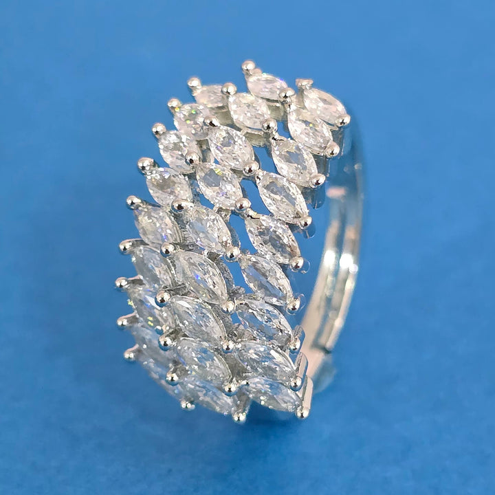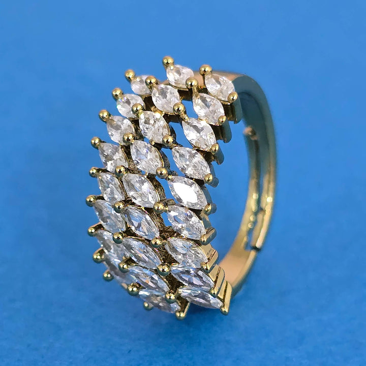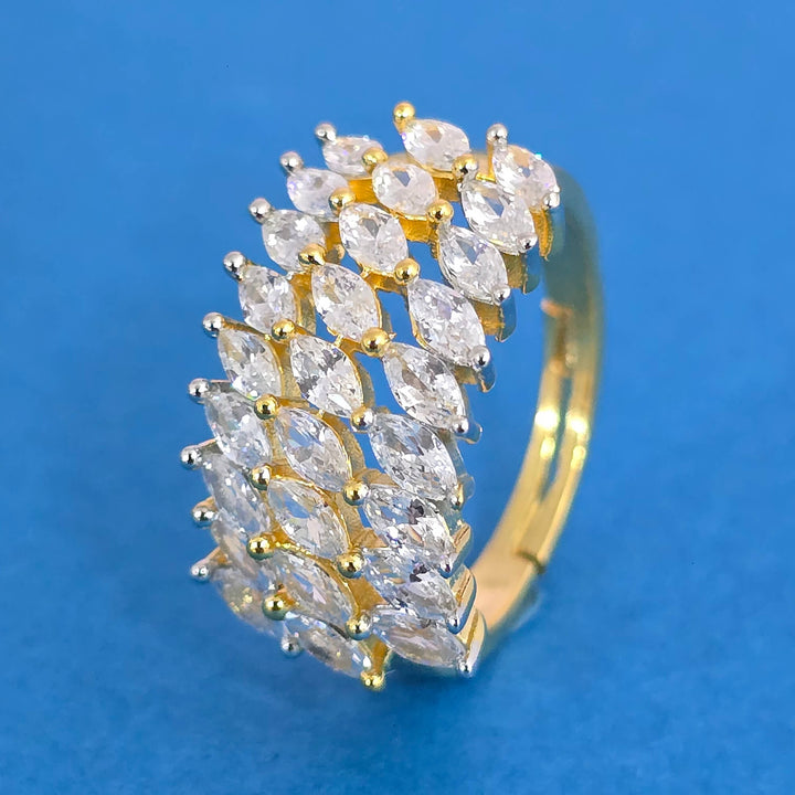 Weight: 4.0 Grams, Height = 12 mm || Width = 20 mm,Latest Design,Mehndi Plating,2 Tone Plating,Rhodium Plating,American Diamond Ring